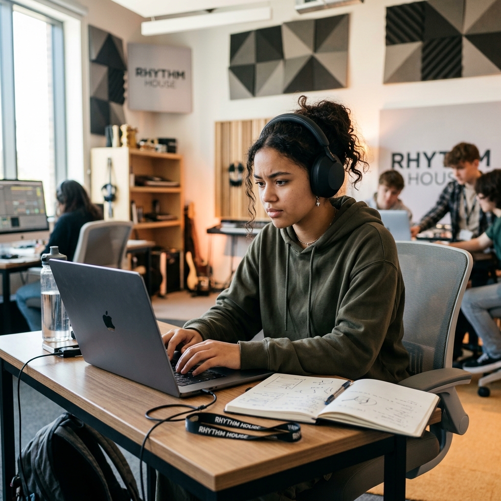 Piano, guitar, drums, and vocal classes with graded learning paths for all age groups.
